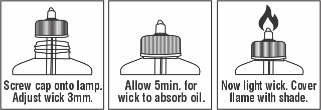 Allow 2 - 3 minutes for wick to draw oil before lighting the lamp.